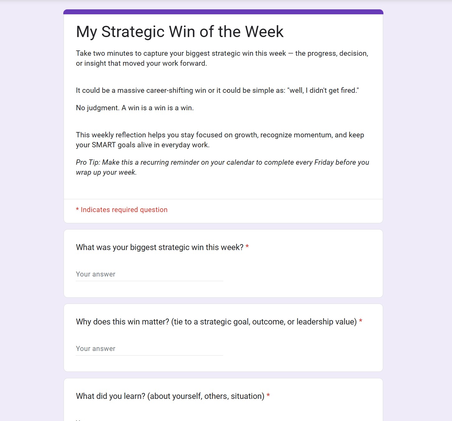Pro Tip: Make this a recurring reminder on your calendar to complete every Friday before you wrap up your week!